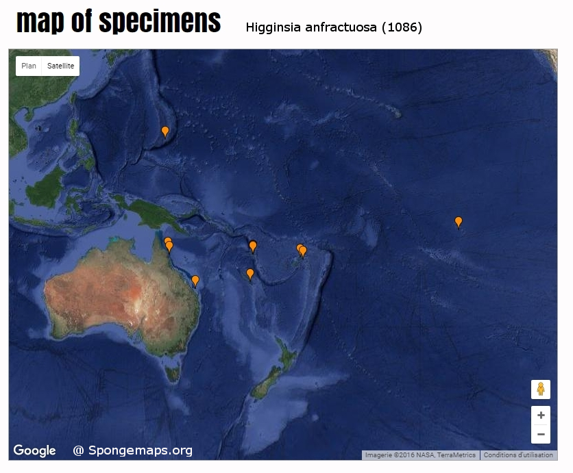John Hooper (2014). QM1086 Higginsia anfractuosa Hooper & Lévi, 1993. In: Hall, K.A. & Hooper, J.N.A. (2014) SpongeMaps: an online community for taxonomy and identification of sponges. (Available at http://www.spongemaps.org).
